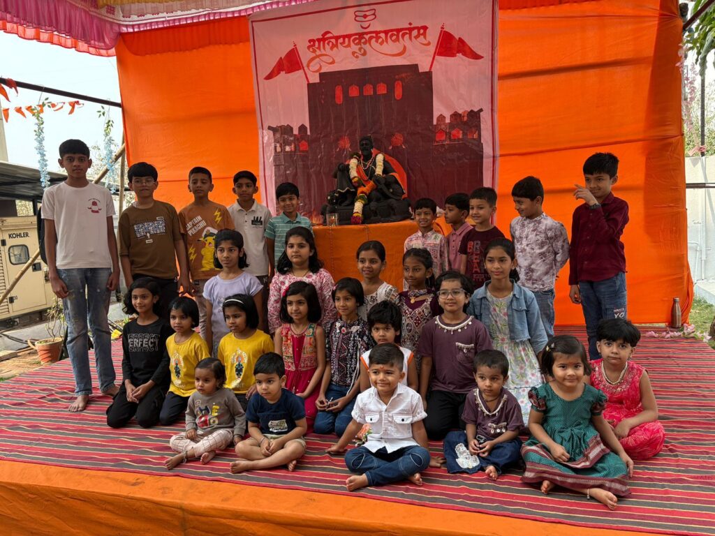 सांस्कृतिक कार्यक्रमात लहानग्यांनी शिवछत्रपतींच्या जीवनकार्यावर भाषणे, गीते, नृत्यकला सादर केली.