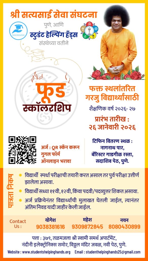 – श्री सत्यसाई सेवा संघटना,पुणे व हेल्पिंग हँड संघटनेचे सेवाकार्य पुणे दि.२२ जानेवारी (सिटीनामा वृत्तसेवा) श्री…